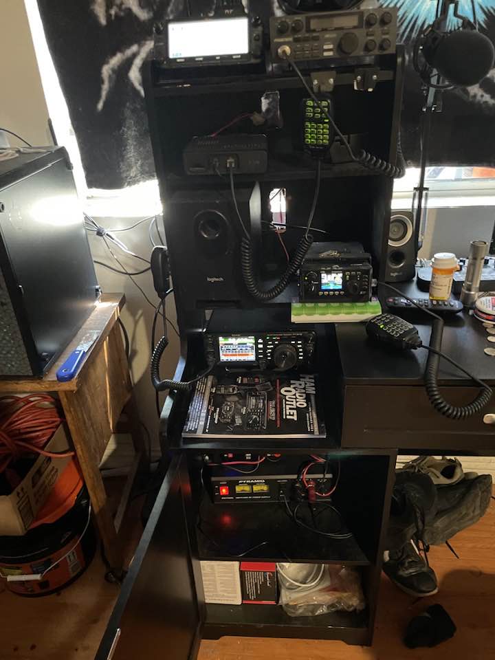 My name is Timothy Pate. I have been a fan of communication for well over forty years. I love picking up and mic and talking to people local or around the world. I started off in the hobby of communication playing with CB radio back in the late 80s. Played with that for many years on and off. I was obsessed with the hobby so much and for years I told myself I was going to get my amateur license back in the late 90s. I put it off for more than 20 plus years. I finally became licensed in 2020 during Covid-19. I have never looked back. So here I am doing a podcast, and I enjoy talking with people all over the world and with this podcast. Anyhow thanks for stopping by. Here is a photo of my current set up.